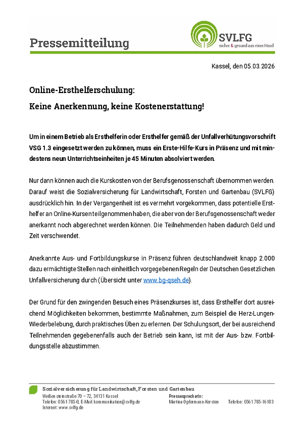 Hier finden Sie die Pressemitteilungen der Sozialversicherung für Landwirtschaft, Forsten und Gartenbau (SVLFG).