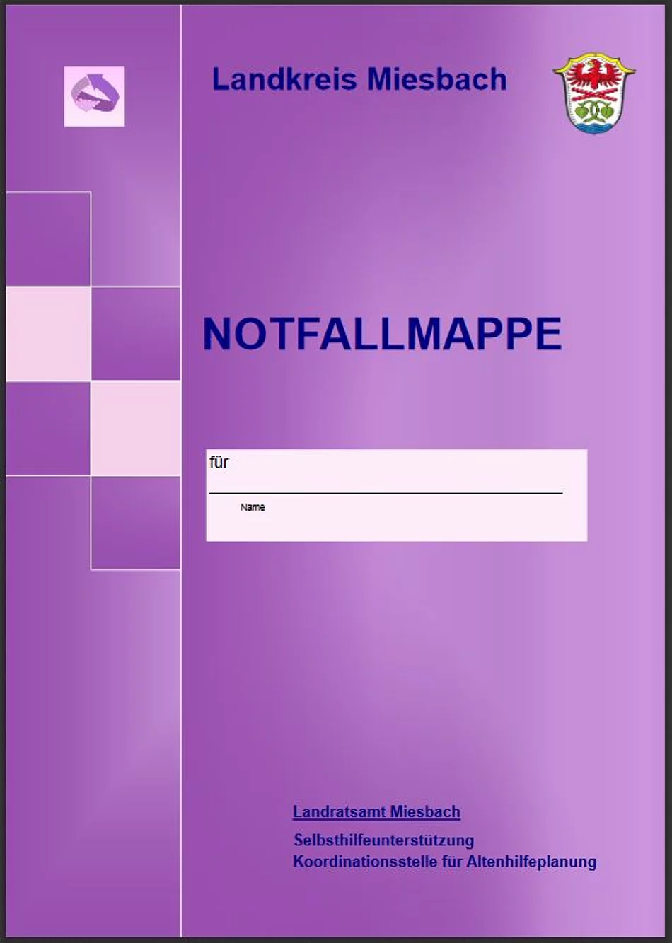 Die Notfallmappe wird vom Landkreis Miesbach zur Verfügung gestellt. Erhältlich bei uns in der Gemeinde